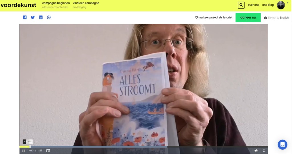 Een nieuw spannend hoofdstuk voor mijn roman Alles stroomt want… ik ben een crowdfunding gestart! Een boek uitbrengen is een dure grap. Voordekunst.nl helpt mij de kosten te dekken. Maak jij mijn boek mede mogelijk?